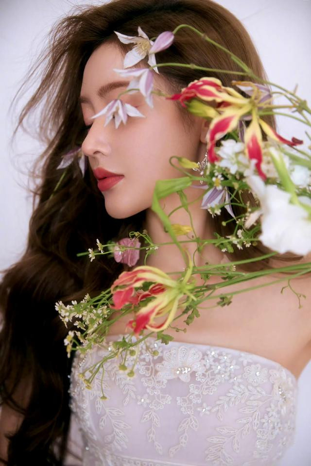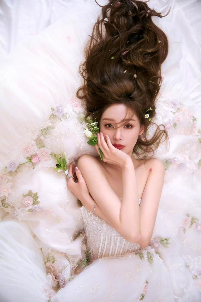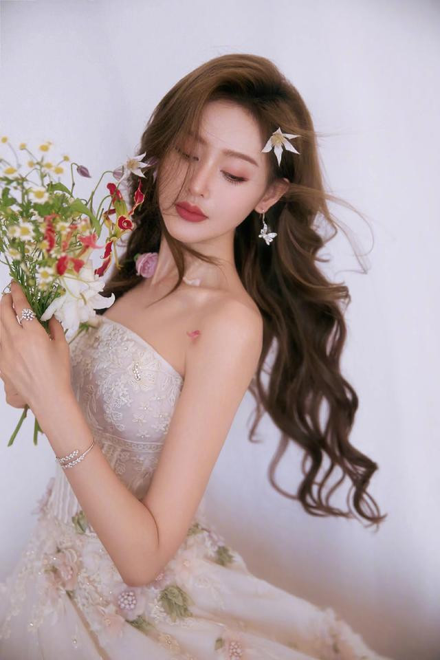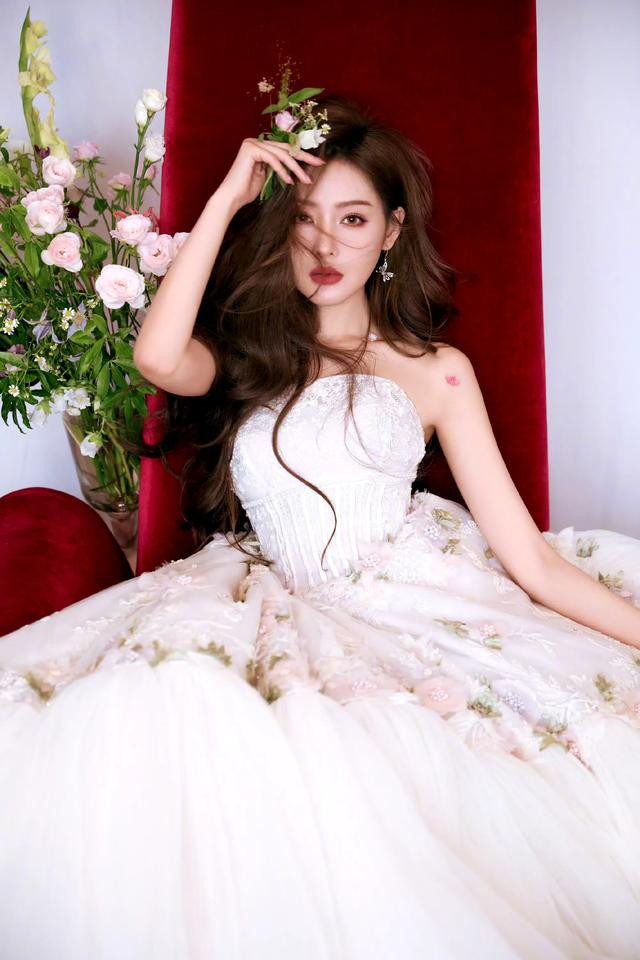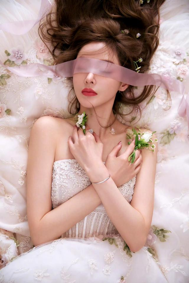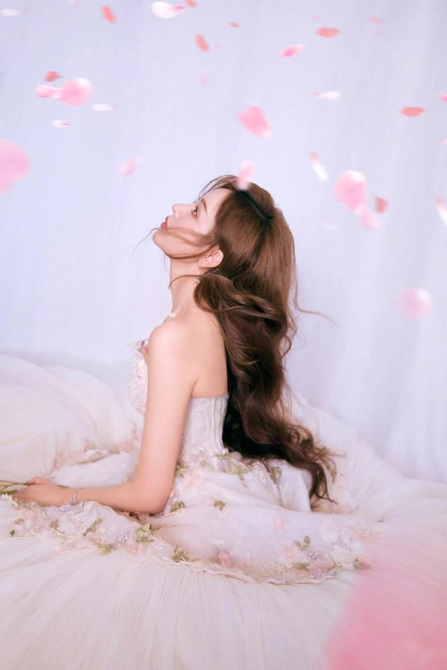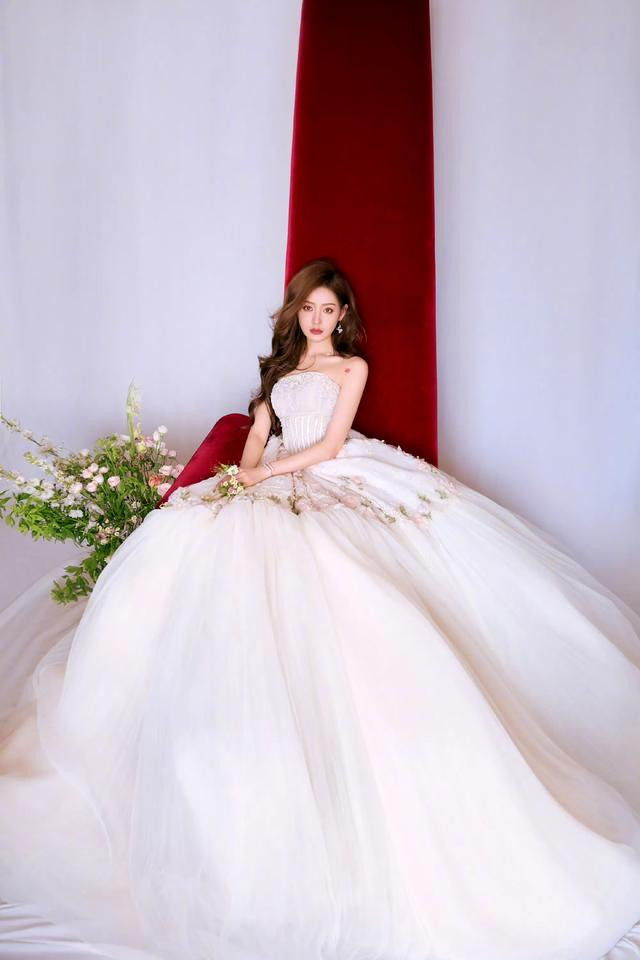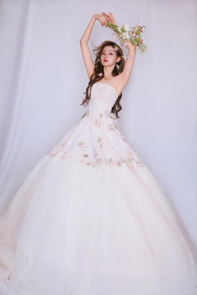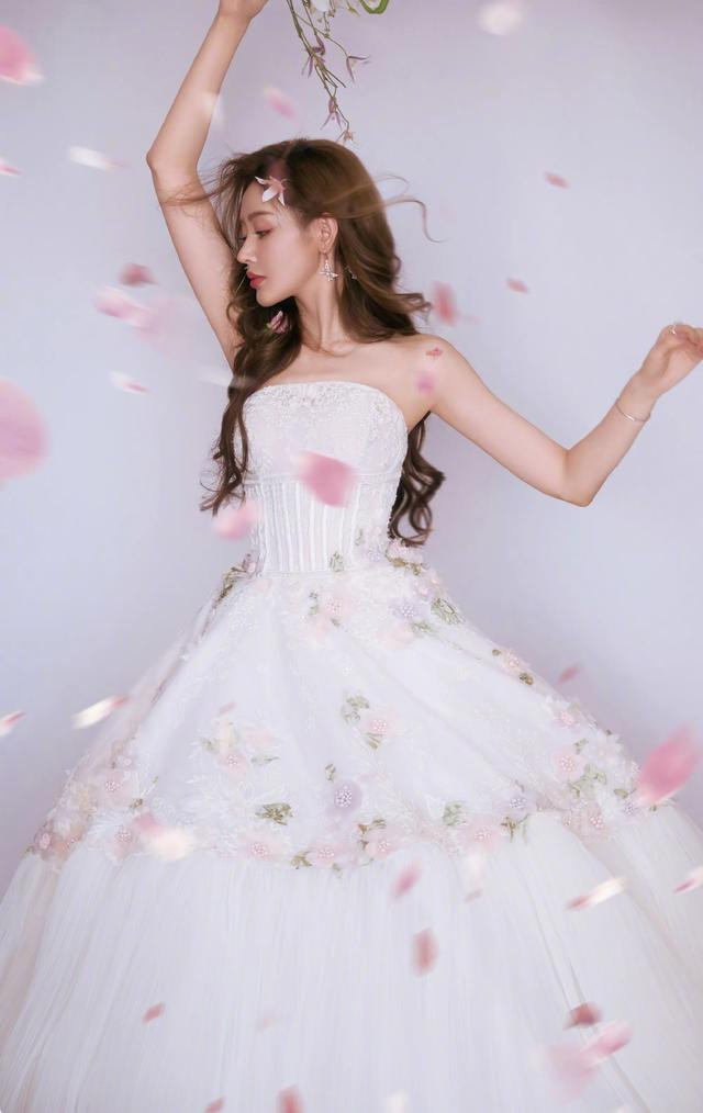 > 张天爱纯白抹胸礼裙, 你是全世界开的最漂亮的玫瑰
